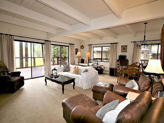 OH THIS VIEW! PRICELESS! Get a jump on your dream of owning that "mountain cabin"! Spring and summer are just around the corner, the time is now to come and take a look! Located in Plumas Pines in Plumas County. Minutes from golfing, swimming, biking, hiking, fishing and wonderful local dining! This comfy cozy cabin features 2 nice sized bedrooms upstairs with a full bath. The downstairs area is nice and open with a dining area, kitchen with a counter/space for eating, a wet bar or coffee bar, half bath with a laundry closet, sliding glass doors that lead out to the spacious deck. The deck is a perfect spot to enjoy the view! A beautiful mountain view along with a golf course view. Another "special" feature is the property has 2 garages and a large parking area/driveway. Give us a call to come and take a look!
