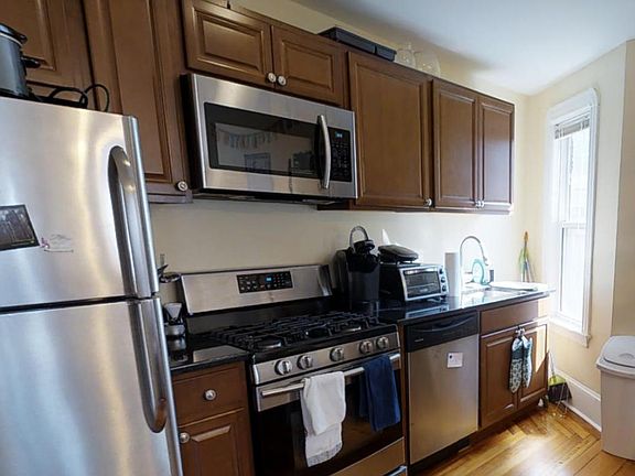 4 bed/2 bath (second floor) - Updated kitchen (modern appliances, granite counters, newer cabinets, etc.) - Master bed/bath - Coin-op laundry in the basement - Hardwood floors - Gas heat - Shared backyard - Off-street parking included