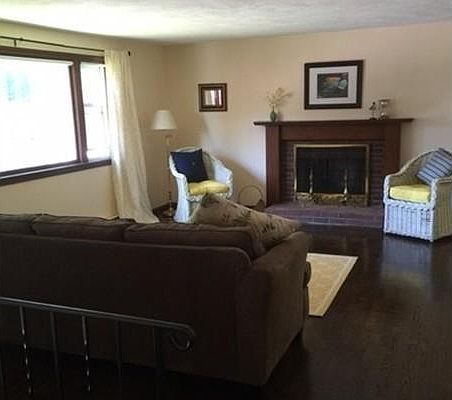 Location, Location, Location! Walnut Hill Area !!! Newly finished hardwoods throughout the main floor, Large fireplaced livingroom leads to Dining room overlooking the three season porch with great view of the oversized private backyard, Eat in Kitchen with wainscoting and lots of cabinets makes you feel at home. Three good sized bedrooms with hardwood, 1 full and 1 half bath complete the main level. Lower level has large family room with brick fireplace and walkout to backyard. Laundry and half bath. Lower level has been freshly painted and new flooring. Easy garage access from family room. All just a short walk to Natick Center,the commuter rail, Natick Common, restaurants and shops. Enjoy great schools and easy access to major commuter routes.
