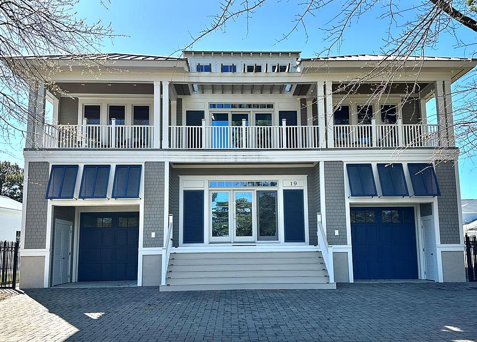 "WAVE ON WAVE" COASTAL CONTEMPORARY HOME IN BAY CREEK- GRAND BAHAMA model Marina Village East w/ beach & pool access. Fully furnished w/ a decorator's touch this popular vacation rental w/over 3500 Sq. Ft. has open concept living. Each of the 4 Bedrooms has its own en-suite bath. Huge gathering space upstairs central to each bedroom. Spacious family room w/ fireplace wraps into kitchen & dining area. Large kitchen, 2 large granite islands, wine coolers, mood lighting throughout. Wonderful space for entertaining family & friends. Dual upper & lower decks on front and back, plus screened eating porch. Split garages offer plenty of space for car, golf cart, beach gear & game room. New HVAC in 2025. In Historic Cape Charles, take golf cart to beaches, shops, restaurants, marinas & golf.