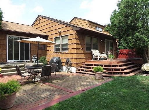 Move in condition sought after end unit ranch featuring Big EIK*Recessed lights*ceramic backsplash*undercabinet lights*newer vinyl floor*Hardwood in 2 brs*Hallway*Sunkin LR with new beige carpet*MBR has newer Full bath*Stall shower*sliders to beautiful deck leading to Hot Tub*Attic*full finish.bsmnt/3rd bedroom*1/2 bath*