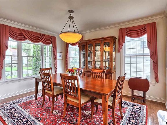 FLORIBUNDA - Fabulous open floor plan! Formal dining room, two story family room, large kitchen with new SS appliances, breakfast bar and dining area. 1st floor master suite! First floor laundry. Additional second floor master suite. Finished lower level with media room, exercise area, office and full bath. Large outdoor paver patio with heated Anthony and Sylvan gunite inground pool and privacy fence. Features include custom window blinds, new first floor hardwood, fresh paint and new furnace.