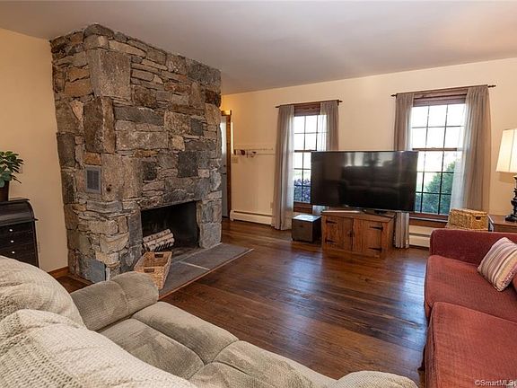 Are you looking for charm and character? This reproduction saltbox Colonial could be the one. You'll love this Classic New England image with wide plank floors and a fabulous fireplace. Within the past five years, the sellers updated the windows, roof, furnace, and gutters. Peacefully set on 1.55 acres with a screened-in porch to relax in the beauty surrounding you. You can't beat the location; it's close to everything, walking distance to library, town green, post office, and Dari Serve. Definitely a happy home at a price to make you smile!