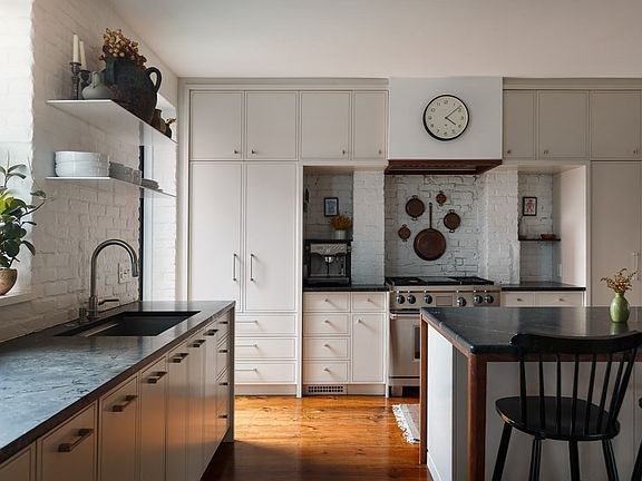 Welcome to 19 Chestnut Street, a custom gut renovated home in Charlestown's Gas Light District. At 4,207 GROSS SF this home features 6+ bdrms, 4.5 baths, and a private courtyard. The entry level features a kitchen that blends old world materials with modern design complete with Wolf, Fisher Paykel, and Bosch appliances, Negresco granite counter tops, dining banquette, large mudroom with extra fridge/ freezer, and pine flooring throughout. Front facing fireplaced living room with soaring ceilings overlooking beautiful Chestnut Street. Primary suite features massive floor to ceiling windows, custom walk-in closet, double vanity and makeup bar.This home also offers original elegant details throughout, unique architectural elements, guest bdrm with ensuite bath, large laundry room, and a wide open basement with an abundance of storage.19 Chestnut is an architectural gem that combines historic charm mixed with modern, intelligent design. *Pls inquire about parking and EV charger