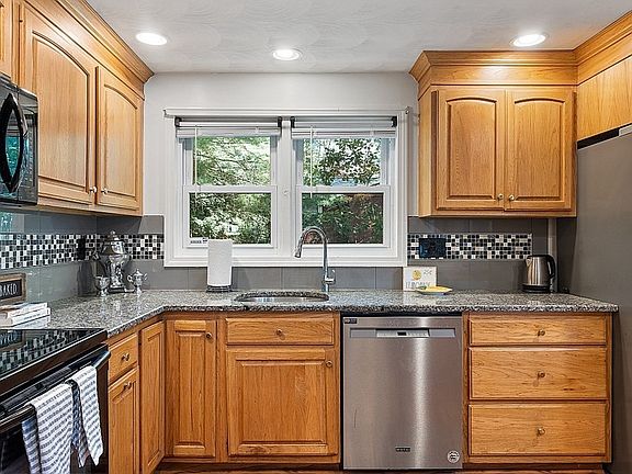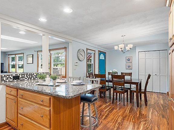 The home you have been wondering about is now available!! A sprawling ranch-style home that has been beautifully updated and maintained with over 2,100 sq. feet of living space. As you enter you will be amazed at the spacious open-concept floor plan. The living room is light and bright w/large windows and a fireplace. The kitchen has updated cabinets, granite countertops, s.s. appliances and breakfast bar. The family room offers 2 skylights, a utility area with storage, & an exterior door to the backyard. The other end of the home has 3 bedrooms, an office, & 2.5 baths. Primary bedroom w/ensuite bathroom, w/granite countertop, custom closets, slider to deck ready for hot tub, and plenty of storage space in basement below addition. All major updates have been completed ~ roof, vinyl siding, heating system, water heaters, windows, appliances, and generator. Conveniently located near Thanksgiving Forest and Great Brook Farm!