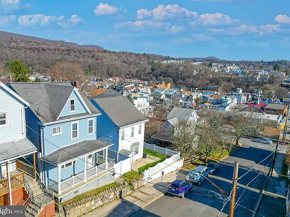 Situated on a quiet street within walking distance of downtown Tamaqua, this single home offers abundant space with a number of remarkable touches. A covered front porch welcomes you into the main level via an entry hall open to both the living and dining rooms. The living room features a propane fireplace and opens effortlessly into the dining room whose bay window fills the room with light. The kitchen is bright and functional and leads to a dedicated laundry room at the home’s rear. Upstairs, an updated hall bath is complimented by three bedrooms with a spacious primary bed to the home’s rear featuring a propane burning stove. Both levels of the home boast covered side porches, offering eastward views of surrounding hills, and leads to a covered patio bordering the privacy-fenced yard. The detached garage is stick-built marvel at 1280sf of extraordinary and versatile space with concrete floor, insulation, and heat forthcoming. Two off-street parking spaces to the rear are a bonus!