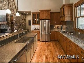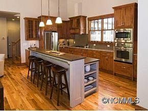 Mountain Elegance. Front porch views, 24 foot cathedral ceilings, 3" oak floors, open floor plan, 2 story stone fireplace, gourmet kitchen with natural gas, stainless steel range, large master with big windows, walk-in closet, granite in master bath. This model home is available with a lease back opportunity. Call for details. 24/7 guard gated community, 6+ miles hiking trails, outdoor amenities, just 7 miles from downtown Asheville.