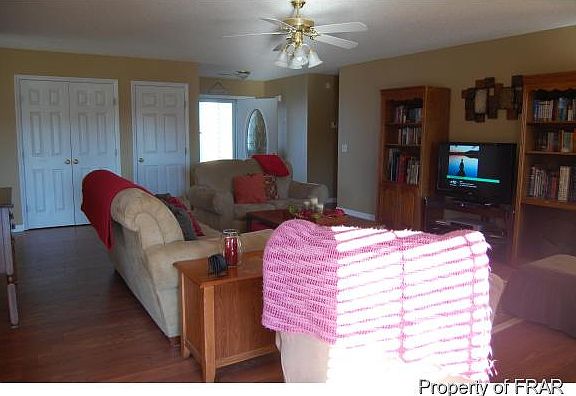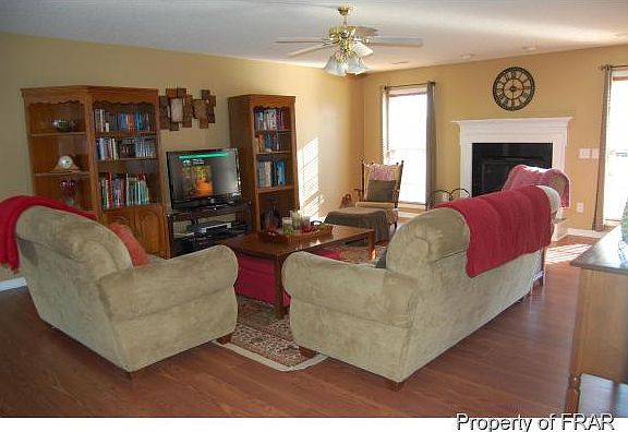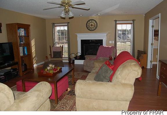 -Welcome home! This beauty offers a great floor plan with all bedrooms on the main floor and bonus upstairs. The master suite boasts a large sitting room with a cozy fireplace. The sunny dining room walks out to the patio for outdoor entertaining. The front porch is covered. Enjoy plenty of space to park in the two door garage. Enjoy hot summer days at the community pool with clubhouse. Easy commute to Campbell University, Raleigh, Fort Bragg or Fayetteville. Come see!