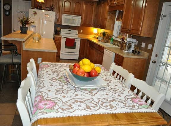 Great family home on sloping lot. Wonderful floor plan with open kitchen/living area. Large maste bedroom with tiled bath and very large walk in closet. Wood or tile floors in the entire home. Nice large laundry room. Covered patio opens from kitchen and dining area.
