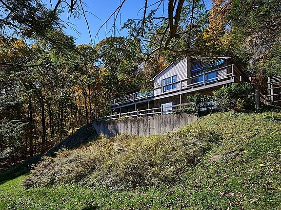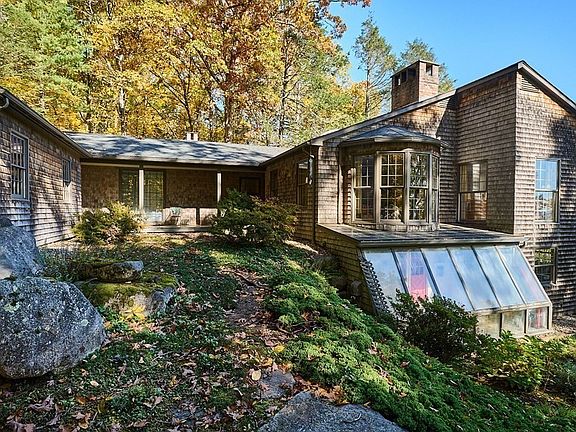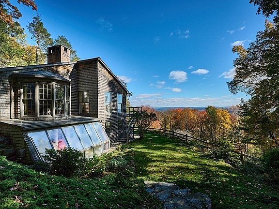 Want a STUNNING view of the Valley from Horse Mountain, a manicured park-like yard, a greenhouse & PRIVACY, w/in 5 minutes of downtown Florence? Then this house is for you! Outside this is a mid-century modern home, but inside are large rooms, ornate w/ detailed moldings, built-ins & rich HW floors. Off the entry hall is an impressive library w/FP, 1/2 bath, a LR also w/ FP & a slider to gaze at the foliage leading to a formal DR. The kitchen has lots of cabinetry, a W/D, pantry & slider to the wrap-around deck. A perfect home for 1-floor living, the large main BR has MANY closets, a dressing rm & full bath. 2 large BRs, a full bath, a family room, a 2nd kitchen w/ stackable & dining area, a SEPARATE ENTRANCE, workshop & storage rooms set apart the lower level. Rent it or incorporate it easily! Don't forget the greenhouse & potting shed! A new Viesmann boiler & hot H20 tank added in 2020 & AC replaced in 2022! A little TLC will make it yours! Showings begin @ Open House 4/20 from 1-3.