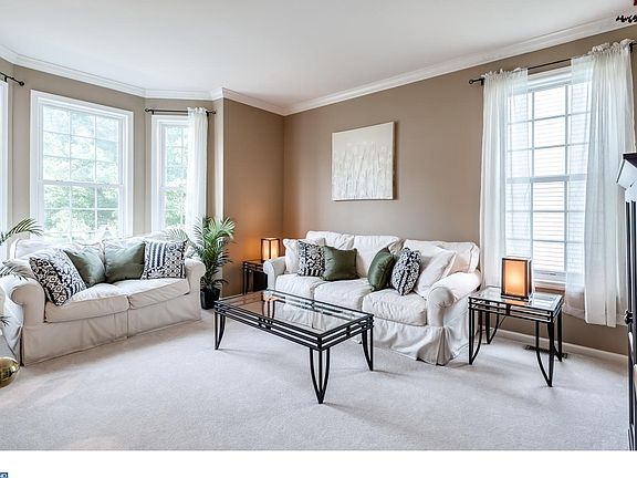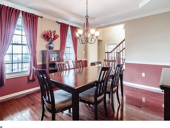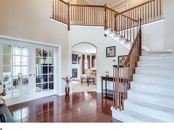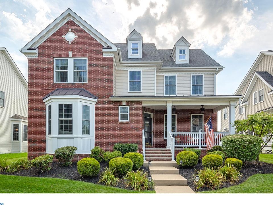 Welcome Home to Heritage at Chesterfield! Enjoy watching the sunrise from this east-facing home with spacious front porch. Light and bright throughout, with the perfect blend of comfort and elegance. You will enjoy the open floor plan, formal living room and dining room, family room with arched entryway, lots of windows, recessed lighting and gas fireplace w/mantle, large eat-in kitchen with granite countertops, large island, tile backsplash, upgraded appliances and 42" cabinets; tile, carpet and gorgeous hardwood floors on the first floor. Upstairs, you will find a nicely sized master bedroom with two large walk-in closets and master bath with two vanities, corner soaking tub, and separate stall shower; three additional bedrooms and full hall bath with double vanity. Full finished basement with home office and lots of space to relax, entertain, exercise and play. Outside you will enjoy summer fun and relaxation on the Paver patio. Whether indoor or outdoor, this home is ideal for casual and formal entertaining. Easy access to Rts 206,295,195 & NJTPK. Close to elem. school, parks/walking paths. A MUST SEE!