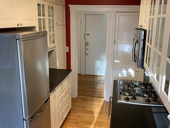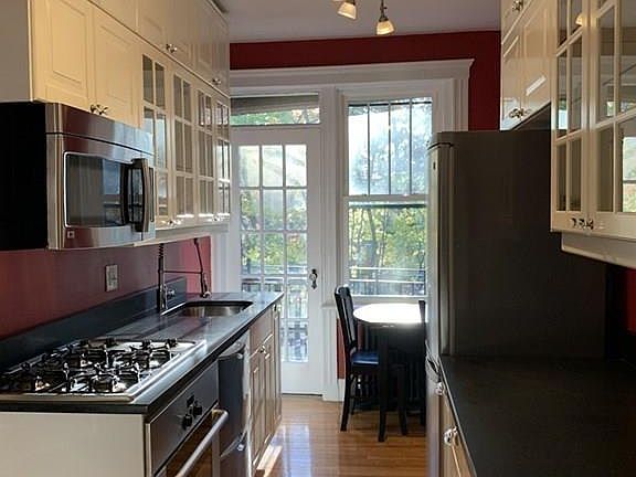AVAILABLE SEPT. 1ST. This sun-filled 1-bedroom penthouse corner unit is located in a professionally managed building nestled in a quaint neighborhood of Cleveland Circle. This unit offers good sized rooms, large hallway, high ceiling, ceiling fan in living room and bedroom, and hardwood flooring throughout. Nicely remodeled kitchen with white cabinetry, stainless steel appliances, double dishwasher, eating area, and exterior access to a private terrace. Bright and clean bathroom with tiled tub and flooring. This is one of the few units that has in-unit washer/dryer, which is a great convenience. This building offers a storage bin, has intercom system, and common laundry facility. This Location can't be beat as it borders Brookline, and everything is within easy walking distance. Shops, restaurants, and public transportation are all close-by. Please email to show.