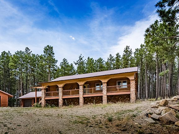 Look no further, this cabin home has it all! Large, open floor plan that will accommodate large groups. Stone wood-burning fireplace is the centerpiece of the greatroom and framed by large windows that bring the outdoors in. Vaulted tongue and groove ceilings with recessed lighting and fans. Eat-in kitchen with breakfast bar, granite countertops, stainless steel appliances and lots of cabinet space for storage. This cabin makes a great mountain getaway or full-time residence. It has been lovingly maintained and is move-in ready. The master bedroom has a large walk-in closet and ensuite. Now in case you have lots of mountain toys....there is plenty of room as there are two 2-car garages. One is adjacent to the house and is accessed through the covered breezeway, the second, over-sized garage is detached and has plenty of room to store all of your mountain activity equipment/vehicles. There is a covered deck that runs the entire length of the front of the home, perfect for watching the wildlife as they mosey past the house. In the back is a smaller, more private covered deck perfect for enjoying some solitude. This home is also fairly close to Angel Fire Resort Country Club and Clubhouse. This outstanding facility houses 3 restaurants, a fitness center, indoor pool and Golf Club House.