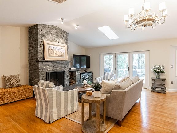 Situated on 1.44 acres of meticulously manicured ground, this gracious home is ideally located on the Cumberland Foreside with 5 bedrooms and 3 full baths. The high end kitchen with cathedral ceiling features beautiful stainless steel and panelized appliances, quartz counter tops and a wrap around peninsula with space for seating. The timeless layout offers a formal dining room and a quaint breakfast nook overlooking the tranquil backyard. The stacked ledgestone fireplace and hearth are the focal point of the living room. The primary suite boasts a walk-in closet, radiant heat in the bath, a custom tile shower and a soaking tub. These luxurious features can provide a spa-like experience in the comfort of one's own home. Two additional bedrooms, full bath, office and laundry complete the first floor. The daylight lower level offers a family room with a wet bar, two bedrooms and a full bath. This space is highly desirable for those who frequently have visitors or want additional space for their family. The custom shed and detached garage allow for the perfect workshop space or can be used for easy storage.