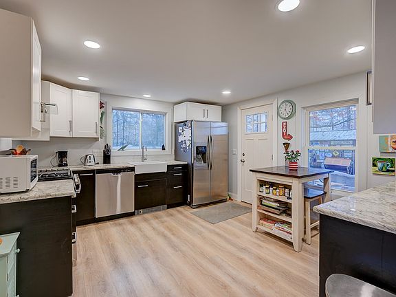 This beautifully updated 2 bedroom home offers modern comfort and style, just minutes from town with the added convenience of public utilities. The whole living area has been completely remodeled, featuring a new kitchen with granite countertops, a fully renovated bathroom with a walk-in tiled shower, new windows, a new roof, and a new heating system—every detail thoughtfully upgraded. The walkout basement provides plenty of additional space, ready to be tailored to your needs, whether as a recreation area, workshop, or storage. Outside, you'll find an outbuilding with power, perfect for extra storage or a creative workspace. The property is zoned for both residential and commercial use, giving you limitless possibilities. With its blend of modern upgrades, versatile spaces, and a convenient location close to all amenities, this home is ready to welcome you.