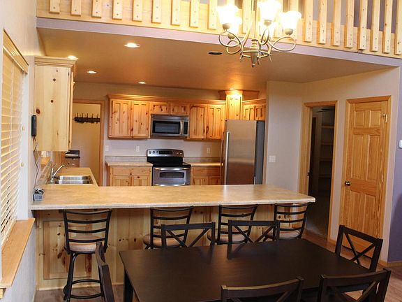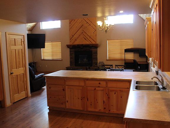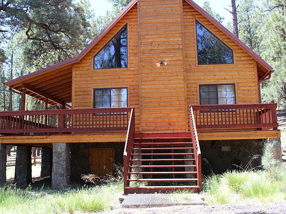 Beautiful mountain home for year round living, located in a private and secluded location in the pines. Open floor plan with kitchen/living room. Large covered decks and an extra large to car garage. Also a deck outside upstairs bedrooms.