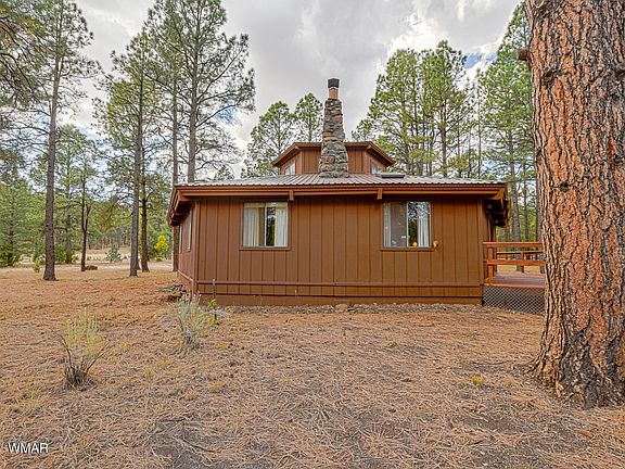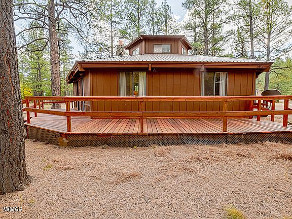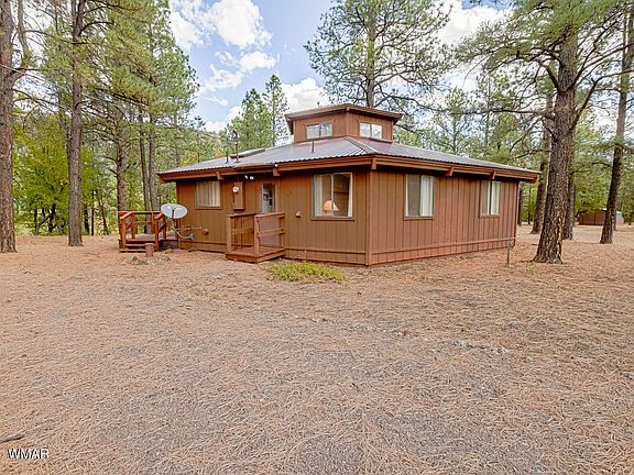 ONE OWNER, LOVINGLY MAINTAINED HEXAGON HOME IN THE TREES ON 5.39 ACRES UNRESTRICTED PROPERTY IS BEING SOLD FURNISHED; COZY LOFT HAS WINDOWS ALL THE WAY AROUND FOR 360 DEGREE VIEW; METAL ROOF INSTALLED IN 2016, NEW FURNACE, WRAP AROUND DECK NEWLY REPAIRED/SEALED; COLTER CRREEK RUNS THRU THE BACK END OF THE PROPERTY WITH A VARIETY OF TREES ALONG THE BANK. WONDERFULLY EFFICENT PRIVATE WELL, ONLY 102' DEEP. BE READY TO SIT ON THE DECK AND WATCH THE WILDLIFE WHILE LISTENING TO NATURE. (BUYERS SHOULD BE AWARE THERE IS A DISCREPANCY IN THE ACREAGE SIZE ON THE APACHE COUNTY WEBSITE. APPRAISER CONFIRMED SIZE; PROPERTY CORNER MARKERS ARE IN PLACE, BUYER TO VERIFY, BUT SURVEY MAY BE REQUIRED).
