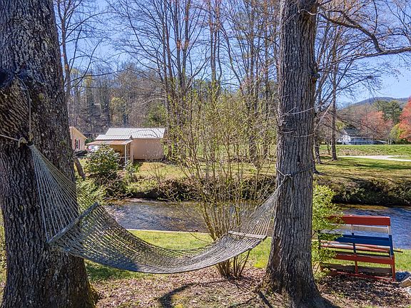 Come check out this beautiful home on Coweeta Creek!! This updated 2/2 house sits on .92 acre of flat, usable land with 180 feet of creek frontage. Outside there's lots of parking spaces with room for an RV. There is a fenced in backyard for your fur babies and big areas for gardening. Enjoy the quiet sound of nature as you watch and listen to the creek from your covered deck all while soaking in your hot-tub! The kitchen is spacious and open with plenty of counter space and cabinets and plenty of room to entertain. The living room has a rock faced fireplace with a wood-burning insert. There are two good-sized bedrooms, two baths and beautiful manufactured wood floors throughout. There is an attached one car garage and a detached carport. Restrictions have lapsed. Limited cell service. Internet available.
