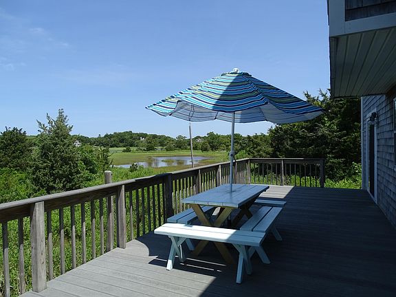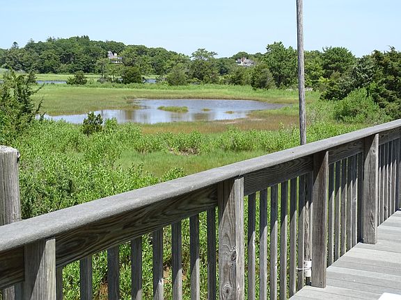 Craigville Beach! Look no further than this perfect 3 bedroom plus den, 2.5 bath Cape that sits just across from Craigville Beach, yet tucked away for privacy. No need for a car or beach sticker! Lovely bright 2 story home : open floor plan with living room, 4 season sun room with flat screen Tv, bright kitchen over looks Centerville River and tidal Marshes. Ocean and river views from all rooms!! Large 1st floor master (queen) with private 1/2 bath and slider to deck. 2nd level has 2 large bedrooms, full bath, den with twins and family room with pull out queen for an extra guest! Extended families will love the extra gathering areas and comfortable bedrooms! Enjoy out door dining on your ocean view or river view decks! 1 block to 2 local out door dining "Beach Shacks"! Fried sea food or hot dogs, burgers and more! Only a short drive to local super markets, CC Mall, theaters, and downtown Hyannis Main Street shops. Golf, tennis, yoga and gyms are all nearby! Can be as busy or relaxed as your vacation calls for! New to market so many weeks available! 4 twins, 3 queens,1 queen sleep sofa. Max 5 adults plus children.