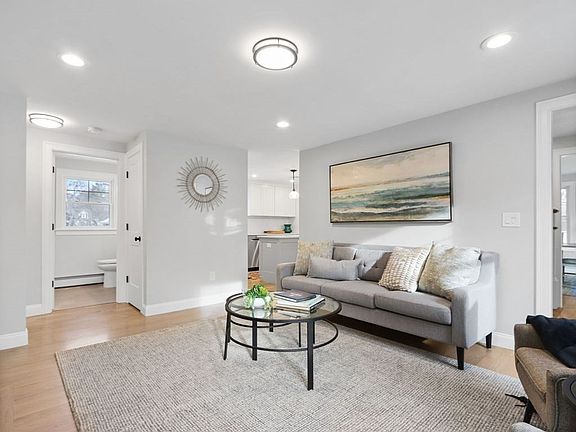 Stunning transformation of this young colonial in a desirable North Natick lakeside neighborhood. Renovation includes new roof, windows, siding, portico, doors, flooring, kitchen, 3 bathrooms and boiler. Beautiful center island kitchen with white shaker custom cabinets, gray island, Bosch stainless appliances, island microwave and beverage center and breakfast area with sliders out to a huge deck. The family room features a custom fireplace with stone front, floating mantle and shiplap trim. Other features include a 2 car garage with direct entry, finished basement and huge level lot.