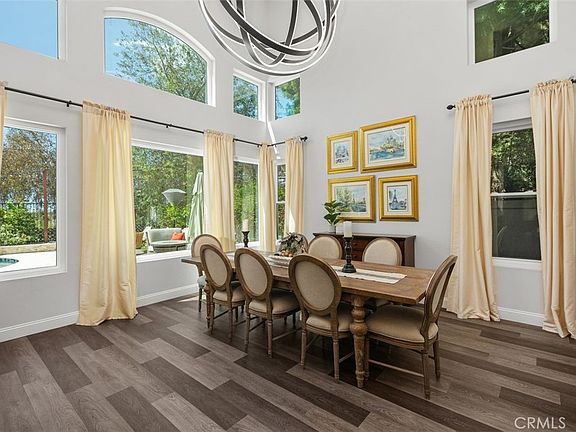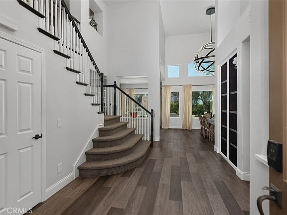 Beautiful Las Flores Home with Endless Upgrades, an Entertainer's Backyard and Amazing Sunset Views! This 5 bedroom and 3 bathroom home with a 3-car garage and a resort-style pool/spa boasts cathedral ceilings, wood laminate flooring, owned and paid solar, house fan, Anlin windows, electric blinds, remodeled kitchen, ceiling fans, recessed lighting, tankless water heater, water softener/carbon filter, repiped and more! The remodeled kitchen opens to the family room and includes a large island, stainless steel appliances, stone countertops, wood cabinets, water filter with reverse osmosis and plenty of storage. The family room includes a cozy fireplace, beautiful built-ins and opens to the huge backyard. The living room and dining room are very spacious with cathedral ceilings, custom chandelier and many windows for natural light. The downstairs bedroom is currently being used as an office with amazing wood cabinet built-ins. The beautiful staircase with wood railings leads you up to the secondary bedrooms and primary bedroom. The primary bedroom is very spacious with double doors, tall ceilings, large closets and a primary bathroom with dual sinks, large bathtub and walk-in shower. The 3-car garage includes epoxy flooring, two paid Telsa batteries, two 220 volt high efficiency EV chargers and air conditioning perfect for a gym. The entertainer's backyard is a dream with a granite BBQ island with seating, recently remodeled resort-style pool and spa with added additional lighting and a tanning shelf with in-pool umbrella, a relaxing fire pit with gas line, wired and installed speakers by Sonos and unlimited sunset views! This home also includes amazing community amenities: pool, tennis court, sport court, picnic areas and more! Close to schools, restaurants, parks, fwys and toll roads. This beautiful home has it all! (click onto the 360 icon under the map to see the amazing drone video)