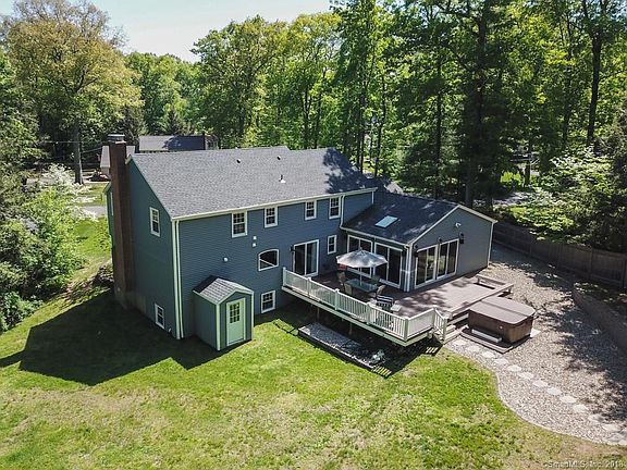 Absolutely impeccable home! Renovated white kitchen with granite counters and stainless appliances opens to the fireplaced living area separated by columns. Slate entry and back hall welcome a 500+ sf media room with bar, mini-frig, motorized blinds, and 110" screen and rear projector with 9/1 surround sound by Bob Serio of Perfect Vision & Sound. Sliders to expanded Trex deck lead to paved walkway, hot tub, and fire-pit. All three baths renovated, hardwood refinished, fresh paint, newer roof & vinyl siding all round out the perfect home! Finished lower-level walks out to rear yard, shed and large .71 acre lot just minutes from town center. Welcome Home!