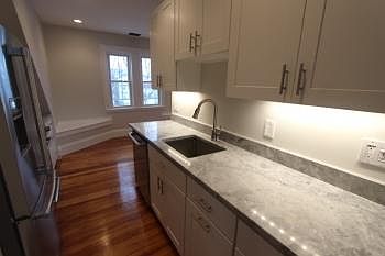 Stunning top floor apartment by Fresh Pond. New top of the line renovation of top floor apartment. Three bedrooms, bath, galley kitchen with all new appliances, granite counters, breakfast nook, central AC, huge closets, skylights in every room. Easy bus ride into Harvard Square. Walk to Fresh pond in 4 blocks, side yard with fence, walk-in closets.
