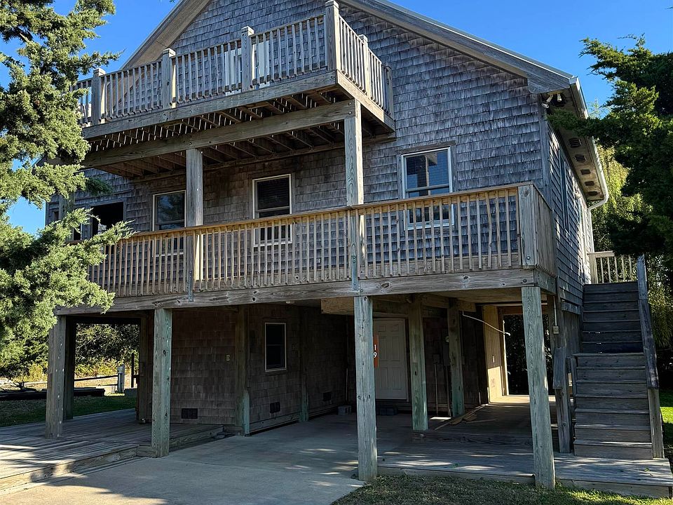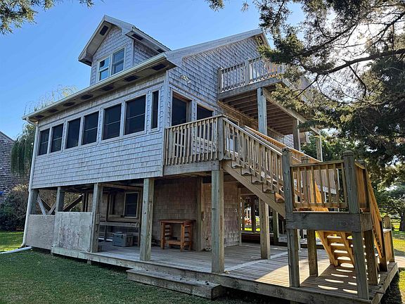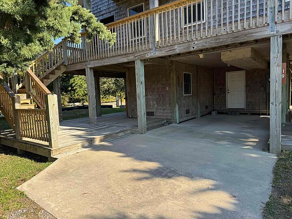 This charming island home is located on the end of a dead end road that abutts an expanse of marsh which then connects to Pamlico Sound. This marsh area is home to local fish camps, an important part of island culture. The house was well built as it's former owner's primary residence. Cedar shakes, reinforced metal roof, concrete parking pad underneath, a nice sized work shop and a peat pod septic system. Oak and cedar trees grace the yard. The first floor contains a great room with kitchen and living, one bedroom and a full bath laundry facility, a spacious screened porch and open sundeck. Upstairs is one large open room which is large enough to accommodate 2 separate bedrooms, there is also a full bathroom upstairs. An open sundeck graces the SW side of the 2nd story. The entire interior of the home, walls and ceilings is beadboard adding to the cottage charm and feel of this home. Perfect cottage for a year round home or vacation rental.