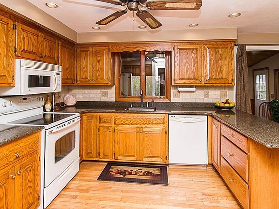 Beautiful Colonial in desirable neighborhood, 9 rooms to include large eat in kitchen, dining room,living room, family room with fireplace and wood stove, walk out to a 4 season porch overlooking the private yard. Four large bedrooms, master has walk in closet and full bath, the Basement is finished with a spacious living area and jacuzzi bath with separate shower, walk out to backyard. Home has central air, central vac and an alarm system. The private backyard has an above ground pool just in time for summer. New Furnace system 2000 (Digital energy manager) low oil consumption - energy efficient. Roof new within last 8 years. New Clapboard siding all sides of house, new window moldings outside. All appliances stay.