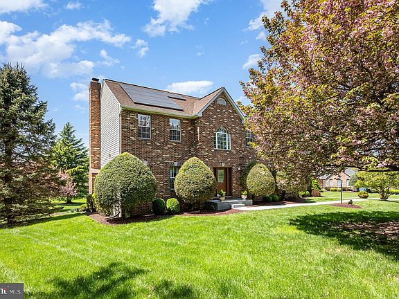 Stunning home in the highly sought-after Mardella Run estate homes community located in Woodstock Maryland. Step inside to discover natural hardwood floors in the foyer, living and dining area plus the beautifully redecorated powder room. Your first level floor décor features a spacious family room with a raised-hearth brick fireplace adjacent to the breakfast area complete with an intercom system. The home also features an adjoining sunroom with an overhead vaulted ceiling fan, skylights and plantation shutters allowing natural light streams and plenty of sunshine creating a warm and relaxing atmosphere. Security storm doors access the step-down deck from the sunroom while sliding glass doors also give additional access to the deck from the breakfast area overlooking blooming landscaped grounds and rolling hills. The kitchen displays decorative granite countertops with backsplash, hanging light pendants and plenty of counter and storage spaces. Stainless steel appliances include a dishwasher, cooktop with range hood, refrigerator and a built-in wall oven/microwave combo unit. The main-level laundry/mud room with washer and dryer adds convenient access to the home via the two-car garage leading directly into the kitchen to store and drop off your groceries. The second level primary suite upstairs offers a cathedral ceiling with an adjoining sitting room and spacious walk-in closet, an en-suite bathroom with double vanity, separate shower with dual shower heads, and a jacuzzi bathtub with four soothing multi-directional jets. Inside features a toilet room and linen closet. Three additional bedrooms, a hall bath and an additional linen closet complete the upper level. The finished basement features walk-out access to the backyard and lawn patio providing even more outdoor living space under the deck. Within the lower level a large open recreational space with wet bar is separated from an enclosed theatre room or man cave with a custom-made sound system and dedicated circuitry ideal for entertainment and dining in. In addition, composite may be used for or used as a fitness area. An additional full bath and generously sized den make this lower-level ideal for guests or creating a personal hobby space, game room or home office. With ample storage, this basement facilitates and accommodates all your family needs while maintaining the luxury and comfort of the home.