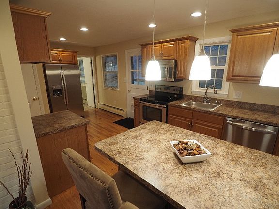 Pack Your Bags and Move Right Into This Beautifully Remodeled Ranch-Style Home, Features Include an Open Floor Plan with New Kitchen and New SS Appliances, 2 New Baths, Generous Bedroom Sizes. Gorgeous Oak Flooring Throughout, Oversized Living Area w/Fireplace, Partially Finished Basement w/Bonus Room and Work Area, Attached 2-Car Garage, Newer Gas Boiler, Newer Windows, and Convenient to Highways, Shopping and Restaurants. This Quality Home Remedies Restoration is Available for Immediate Occupancy. Owner/Agent