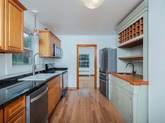 Conveniently located 3 bedroom home in Belchertown. Many updates include the kitchen, bathroom with a stone tile shower, and new oil burner and boiler. Beautifully refinished hardwood floors give this home character. New kitchen appliances and a 2 car detached garage, plus nearly an acre of land. This home also has a front porch and new windows throughout. Easy access to area amenities as well as the Massachusetts Turnpike.