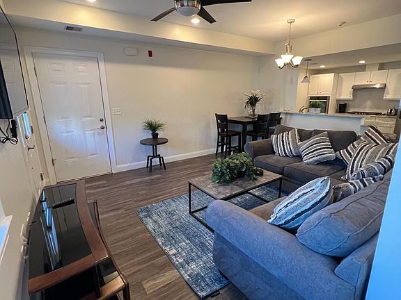 *Returned to the market as of 7/11, move in ready! 7 Day maximum hold period!* Fully Furnished Modern 2 bedroom/2 bath cozy condo with house feel having direct access to the outside. Unit features living room/dining room, kitchen with stainless steel appliances and granite counter tops, large patio, individual climate control with central air conditioning, plank wood flooring throughout, and washer/dryer. Property also features 1 car attached garage, off-street parking for residents and guests, 24-hour emergency maintenance availability, landscaped and smoke free. $1,000 deposit required with application (applied to security deposit balance if approved). Application process consists of credit check and employer & landlord verifications. Required before move-in is: first month, last month and security deposit (equal to one month's rent). Applications will not be considered without the deposit. Heat, hot water, electric and furnishings included in rental, tenants responsible for cable/internet.