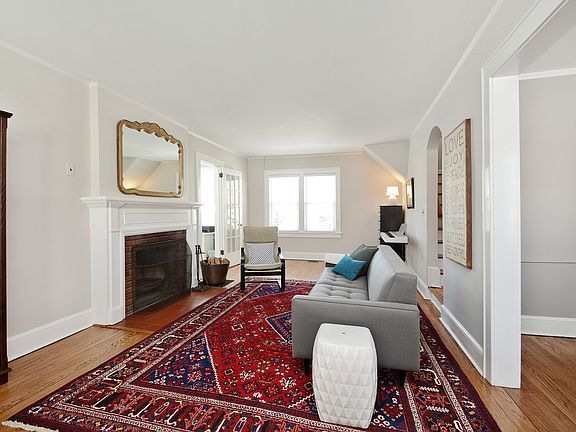 Move-in ready, the perfect start and a commuter's delight -- all rolled up into this delightful Colonial home, located just a block from New York City trains and select shopping. A vestibule opens into an inviting living room with front and back views, a central fireplace and hardwood floors. The formal dining room is nicely sized and charming, with a nearby bright study/den with neutral wall-to-wall carpeting that enjoys three walls of windows and property views. The eat-in kitchen features crisp white cabinetry and tile backsplash, accented with black granite countertops and stainless steel appliances, hardwood floors, and a bay-windowed breakfast area that opens to a paver patio and private yard.Three charming bedrooms are located on the second floor, all with hardwood floors, plus a full hall bath. Stairs lead to full attic storage that offers expansion possibilities, if desired. There's extra leisure space on the lower level, with wall-to-wall carpeting in the recreation room, a laundry room and another full bath.This home is a pleasure to show, a great value, and one not to be missed.