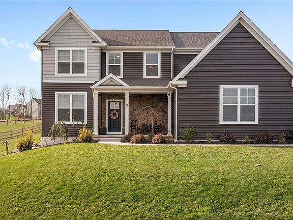 IMMACULATE 3 YR YOUNG Colonial situated on 1/2 acre lot in desirable Reserve at Bally Spring. This 2800 sq ft Rotelle custom built home has over $130,000 in upgrades featuring open concept floor plan!Kitchen boasts leathered-granite countertops;oversized island w stainless-steel aproned sink;custom windows,lighting & more! Stone FP w raised flagstone hearth flanked w built in storage bench & shelves! Enjoy the back yard oasis w custom built patio equipped w sun shade canopy. Natural stone steps lead to 2nd side patio! Oversized Master BR w custom built walk-in-closet,on-suite w walk in shower/dual sinks. 3 add’l bedrms served by hall bath. 2nd flr dedicated laundry rm a plus! Walk-out basement ready to finish is insulated & plumbed for bathrm;sliding door leads to side custom patio. Custom lighting & electric; custom-made blinds,smart thermostat,custom built closet shelving; electrical whole-house surge protector, tankless water heater; water-softener & more! A Must See!