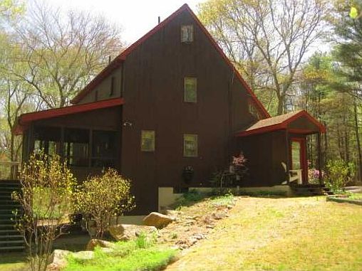 Serenity abounds in this custom home on idyllic 1.8 waterfront acres with dock on Dolly Pond! Low heat costs with 2X6 construction, wood stove, and passive solar sun room with brick and slate. Screened porch overlooking pond and walk out basement.