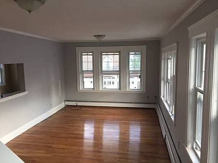 3 Bedroom apartment in 2 family house in desirable Oak Square neighborhood off Faneuil Street. Large white eat in kitchen, gas stove, dishwasher. Large living room with hardwood floors and lots of windows and light. Washer dryer hook ups in basement.