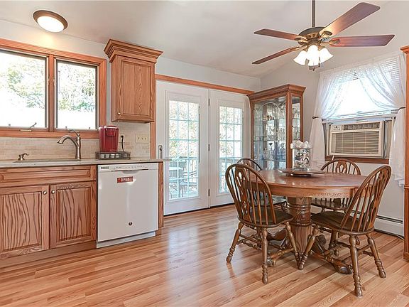 Welcome to a light-filled and cheery Raised Ranch in the Hoxie neighborhood of Warwick. Enjoy time relaxing with family in the lovely living room with vaulted ceilings. Cook with ease in the eat in kitchen featuring granite countertops, gas stove and French doors which lead out to the deck overlooking the fenced yard. The finished lower level boasts a front to back family room, recess lighting and bar; a perfect space for entertaining or use this bonus space for an office for additional bedroom. Work on all your projects in the unfinished basement space which walks out to the backyard and is perfect for a workshop. This home also features gas heat and young roof. A perfect place to call home.