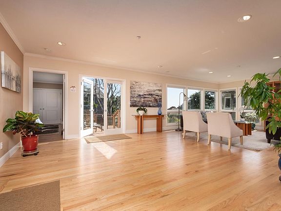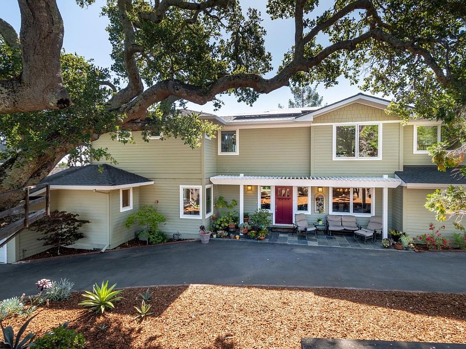 This idyllic San Carlos home is situated on a quiet cul-de-sac & welcomes you with a circular driveway, majestic oak tree & front porch with a crisp white pergola. The living room has large windows & glass French doors where you can enjoy the lush yard & far-reaching views of the bay & surrounding hills. A large center island with a Wolf 5-burner gas cook top is the centerpiece of the kitchen. Lots of cabinetry provides plenty of storage space, including an appliance garage. The serene oak trees are beautifully framed by the windows above the corner kitchen sink. An inviting deck off the kitchen is plumbed for a gas barbecue. The spacious family rm provides a perfect place for play or watching movies. Upstairs, the enviable master suite features stunning views from a slate-covered deck, 2 walk-in closets, 2 sink areas, a large shower with 2 shower heads & views from the deep soaking tub. San Carlos' amazing amenities, such as excellent schools & fun eateries, are just a short hop away!