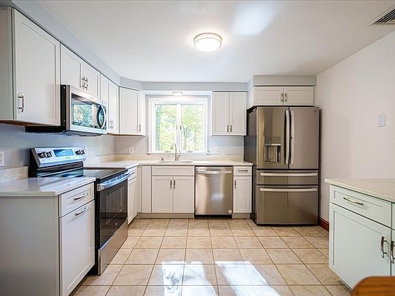 Experience the ultimate commuter convenience combined with lakeside living in this beautifully updated, move-in ready 3-bedroom, 2.5-bath home! Situated just minutes from I-495, this property offers effortless access to 495 while allowing you to enjoy serene lake views from all front-facing windows. Fully refinished hardwood floors and new Berber carpeting grace the interiors, and the modern kitchen boasts stainless steel, top-of-the-line appliances, and quartz countertops. The lower level includes two large bonus rooms and a cozy family room—ideal spaces for an office, playroom, or media center. Outside, unwind or entertain on the professionally hardscaped, multi-level patio with a fire pit and stunning lake views. Nestled on a private, wooded lot, this home offers tranquil privacy just steps from both a private beach and public beach access, letting you experience the best of lakeside recreation. An oversized street-level garage provides plenty of space for all of your lake gear.