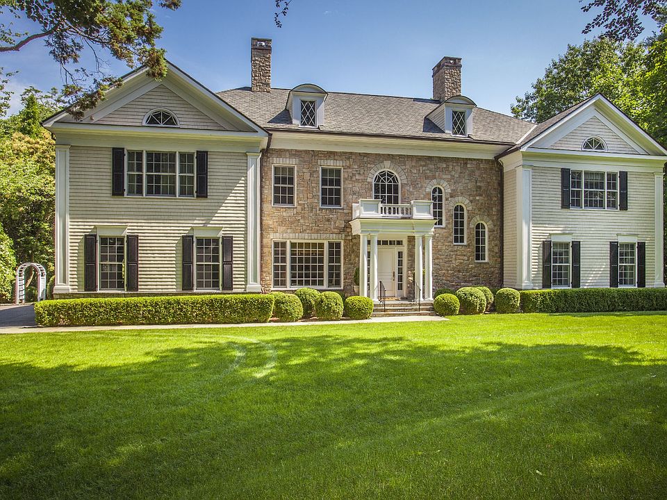 Magnificent stone and clapboard Colonial set on an expansive level acre in the Heathcote section of Scarsdale. This impressive home provides the ideal setting for a contemporary lifestyle as well as gracious entertaining. The outdoor entertaining area includes a patio adorned by pillars and a yard with mature specimen plantings and room for pool. A stunning double-height entry with sweeping staircase welcomes you into this finely appointed home featuring generously scaled rooms, custom millwork and elegant appointments, including 5 gas fireplaces. Ideal for entertaining is the spacious kitchen with island, 2 dishwashers, wine refrigerator, Sub-Zero refrigerator, Viking stove and Thermador double oven. A total of 7 bedrooms and 5 bathrooms are on the second floor and there is a full lower level that can be finished. 9 and 10 foot ceilings. Walk to Scarsdale village, Train and High school. Public bus to middle school and elementary school.
