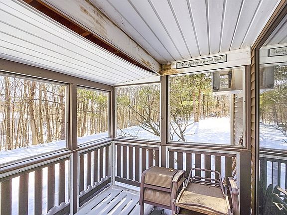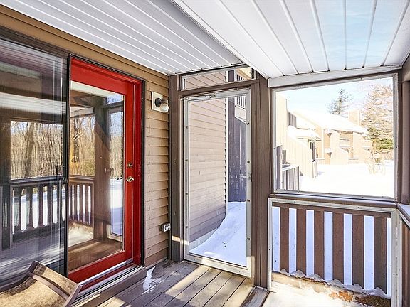 Two Bedroom end condo unit at Coggshall Crossing featuring a fireplace and hardwood flooring from the dining area into a spacious living room. Sliders to a deck and overlooks a private backyard that backs up to the woods. 1st floor has a laundry room with half bath. Open floor plan with a sunny galley kitchen! Wide staircase to the 2nd level with 2 bedrooms and a full bath. Main bedroom has a balcony to enjoy your morning coffee! Additional storage space in large 15" x 19'5" walkup attic which can be used as living space. This condo awaits a new buyer to give it some cosmetics! Don't miss this opportunity!