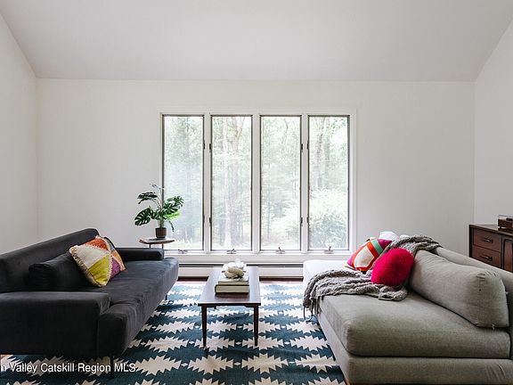 This is your contemporary retreat in Glen Spey, where high ceilings and expansive windows flood the space with natural light, creating an airy, uplifting atmosphere. Secluded far off the road on 3.5 wooded acres, this is the cabin in the woods you've been looking for. All within an hour and forty minutes to NYC.