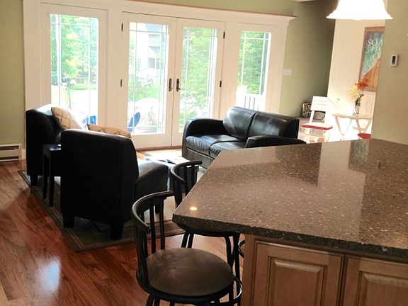 Live the Lake Life in this quaint, beautifully designed NH home. It's set back in a lovely, private community, with beach access and a view of Locke Lake. Custom built in 2008 and has all the modern amenities with the charm of a lake house so you get the best of both worlds. 2 bedrooms, 2 bathrooms, finished basement. Large master bedroom with views of the water. Open concept on the main living floor. French doors span almost the width of the front of the home, and open up to a large porch that walks down to a great entertaining space on the patio; Quality built home with open concept fully applianced, granite kitchen, breakfast nook, upgraded electric features and bonus family room with feel of media room/suite. Live in or use as rental as just steps to private shared beach; enjoy lake life without lake front taxes.