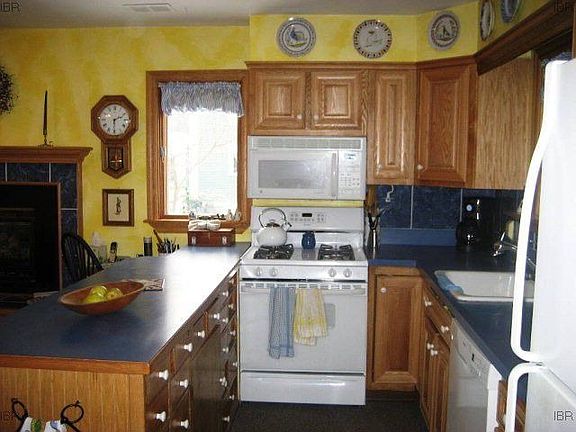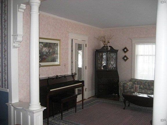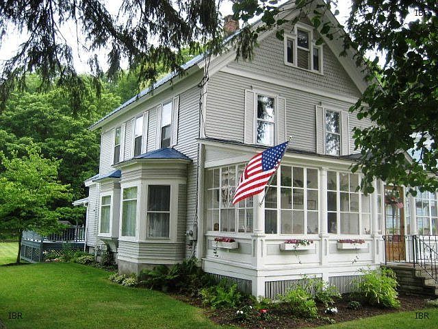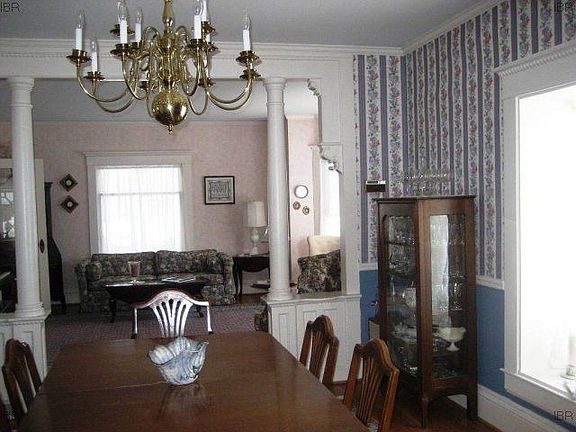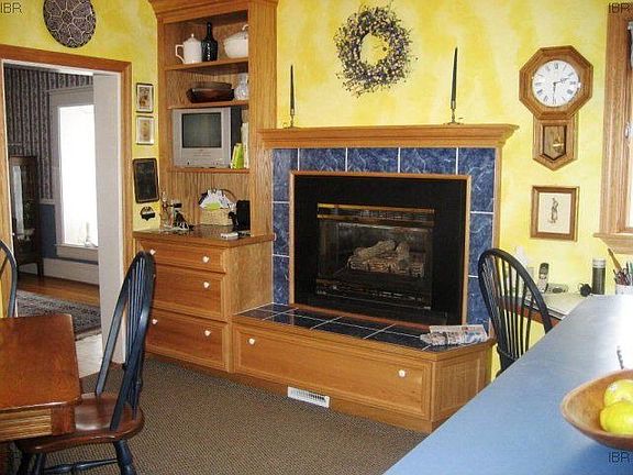 Charming century plus village home with large partially wooded backyard and deck. Beautifully maintained 4 bedrooms with many special features. Hard wood floors in entry, living room, dining room and bedrooms. Large updated kitchen has gas fire place and a unique apothecary peninsula. Extra rooms include glassed front porch, den, dual stairs, 1st floor laundry and mud room. Many custom built ins for storage. Large deck for entertaining complete with natural gas hook up for grilling. House and garage have metal roof. Garage is oversized with work area.