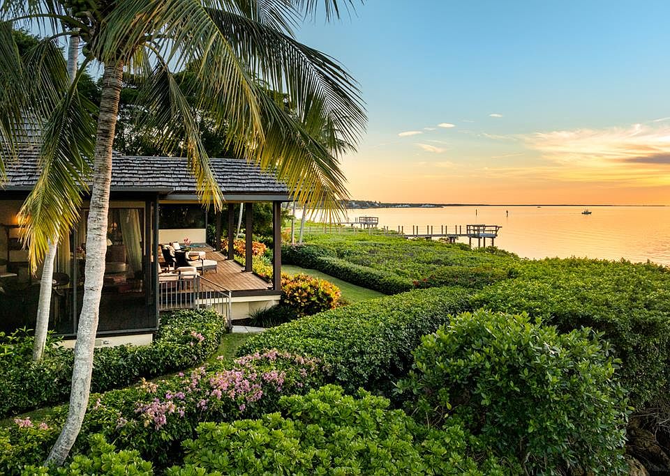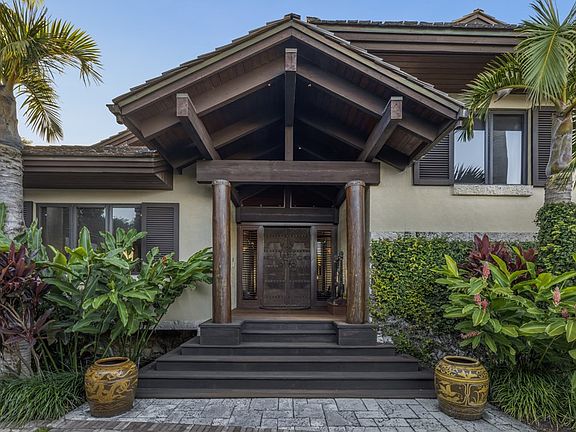 Bali-Inspired Waterfront Estate on Card Sound Bay Discover the ultimate blend of island luxury and modern elegance in this Bali-inspired retreat, set on the tranquil shores of Card Sound Bay in the exclusive Snapper Point neighborhood. Boasting 6,400 sq. ft. of thoughtfully designed living space, this architectural masterpiece offers unparalleled sunset views, lush landscaping, and seamless indoor-outdoor living. A covered porch spans the length of the home, creating multiple distinct sitting areas where you can unwind and take in the mesmerizing bay views. The spacious kitchen, designed for both function and entertaining, features a large center island and panoramic water vistas. The primary suite is a sanctuary of its own, with sliders leading to the deck, where you can wake up to the serene sights of Pumpkin Key. Indulge in his and her spa-like bathrooms, providing ultimate comfort and privacy. Perfect for hosting guests, the home features three luxurious guest suites, each with ensuite baths, plus an optional fourth guest suite or crow's nest office perched above the main living area—offering stunning elevated views. Designed for effortless entertaining and relaxation, the media room and living room open onto a private pool deck, complete with a cabana bath, tiki bar, hot tub, and multiple lounging areas. A gallery wall provides the perfect space to display your art collection, while the property's lush landscaping and private brick driveway enhance its serene, tropical ambiance. The estate is uniquely bordered by a canal leading to a secluded lagoon, offering both beauty and water access. A large garage provides ample storage for all your needs, from vehicles to water toys. This is a rare opportunity to own a one-of-a-kind tropical haven, where evenings are graced with breathtaking sunset views over the Bay. Experience the best of waterfront living in this private paradise.