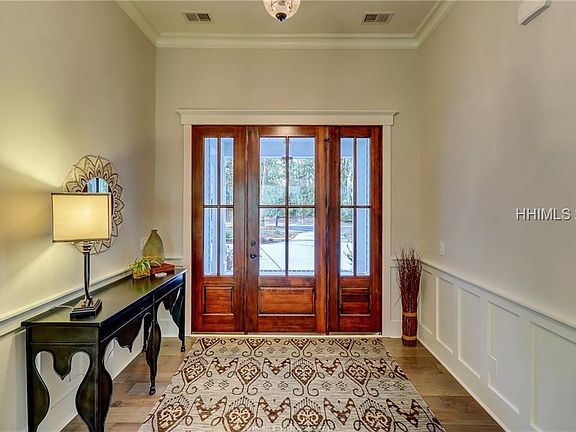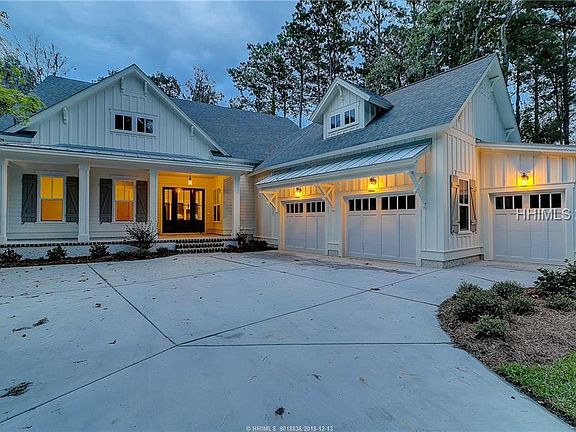 New Crane Model from Premier builder, Hilton Head Custom Homes, offers golf course living at its finest. 3,259 sq ft, 3BR/4BA, 2 car garage plus golf cart garage overlooking lagoon & 5th fairway on west course. Open floor plan w/ 11'6" main living room/foyer ceilings, gas fireplace w/ Savannah Gray brick hearth. Kitchen w/ stunning gray & white cabinetry & custom hood, granite, & center island. Bev Cntr, walk-in pantry w/ barn doors, kitchen desk, service hall bench/cubby storage. 2nd floor bonus room & large walk-in attic for storage overlooks golf course. Large screened Lanai. Backyard has mature oaks w/ spanish moss. Absolutely gorgeous!