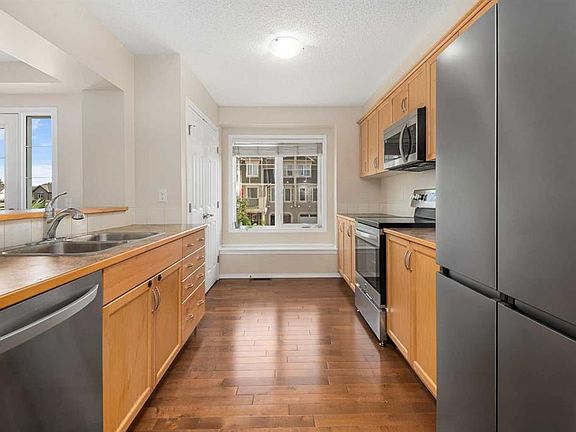 Discover this stylish 3-bedroom, 1.5-bathroom END-UNIT townhome in the desirable community of Windsong. Designed for modern living, this 3-storey home offers the perfect mix of space, comfort, and convenience—with the rare bonus of NO CONDO FEES! Step inside and be greeted by an abundance of natural light streaming through extra windows that only an end unit can provide. The entry level features a single attached garage, laundry, utility, and storage—keeping the rest of your home uncluttered and organized. Upstairs, the open-concept main living area is warm and inviting. The updated kitchen boasts fresh cabinetry, contemporary style, and a layout that makes both everyday living and entertaining a breeze. Whether you’re hosting family dinners or cozying up for a quiet night, this home adapts beautifully to your lifestyle. The upper level offers three well-appointed bedrooms, perfect for families, guests, or a home office. A private balcony and thoughtful design touches throughout make this property a standout choice. With schools, parks, pathways, and shopping nearby, Windsong is a family-friendly community that has it all. And with no condo fees, this is a smart investment for first-time buyers, growing families, or those looking to downsize without compromise. ? Don’t wait—homes like this in Windsong move quickly. Book your showing today!