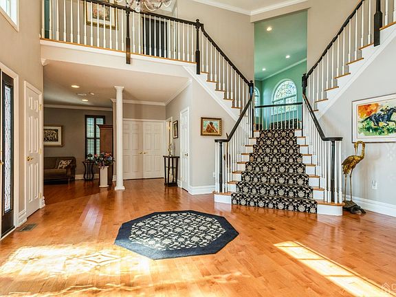Welcome to this remarkable home, an ideal place for comfortable living and entertaining. As you enter, a grand two-story foyer with elegant butterfly stairs and hardwood floors welcomes you. The living room, dining room, and a chef's dream kitchen with granite countertops and a center island set the stage for hosting gatherings. A convenient butler's pantry complements the luxurious kitchen, and the two-story family room with a gas fireplace and surround sound creates a cozy atmosphere. The main floor includes a bedroom and a full bath, perfect for guests. Plantation shutters on first-floor windows add a charming touch. Upstairs, a spacious master suite with a sitting area, full bath, double sinks, and three huge closets offers a retreat. Three more bedrooms and two full bathrooms on this level provide space for family or guests. The full basement is a canvas for your creativity, whether for fitness or storage. Outside, the backyard features a patio and a BBQ area, ideal for entertaining guests. A spacious 3-car garage completes this exceptional home. It blends elegance, functionality, and customization opportunities to enhance your quality of life, offering a welcoming environment for daily living and special occasions. Showings Fri, Sat & Sun go through showing time.