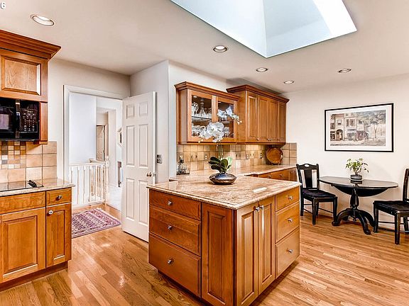 Immaculate 4 bedroom, 3 bathroom day ranch nestled on a quiet street. Main level master suite with private deck. Beautifully remodeled kitchen with granite countertops, custom cherry cabinets and hardwoods. Large family room on main with huge deck overlooking amazing backyard.2 bedrooms and 2nd family room on lower lever with fireplace, sliders opening to patio and exercise room. Nearby shops, restaurants,I-5 and 217. Great schools!